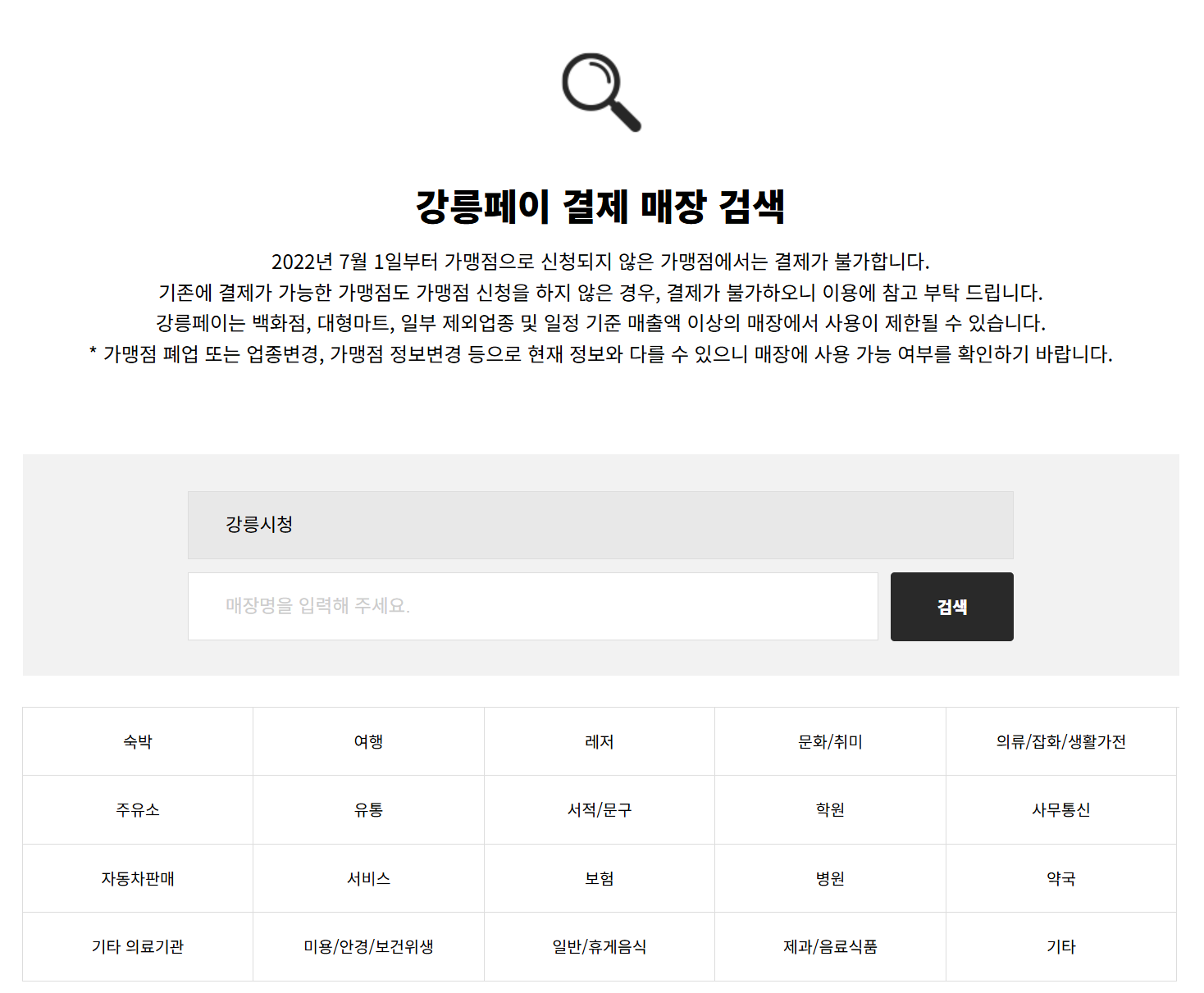 - 강릉페이 가맹점 → 가맹점 리스트 확인