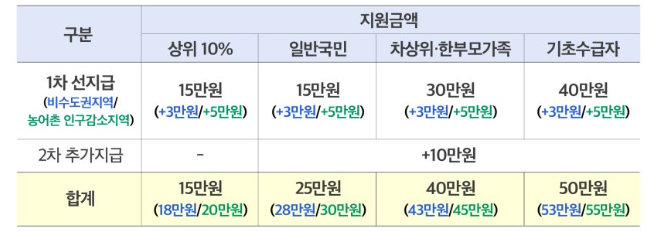 - 비수도권 +3만 원, 농촌소멸지역 +5만 원