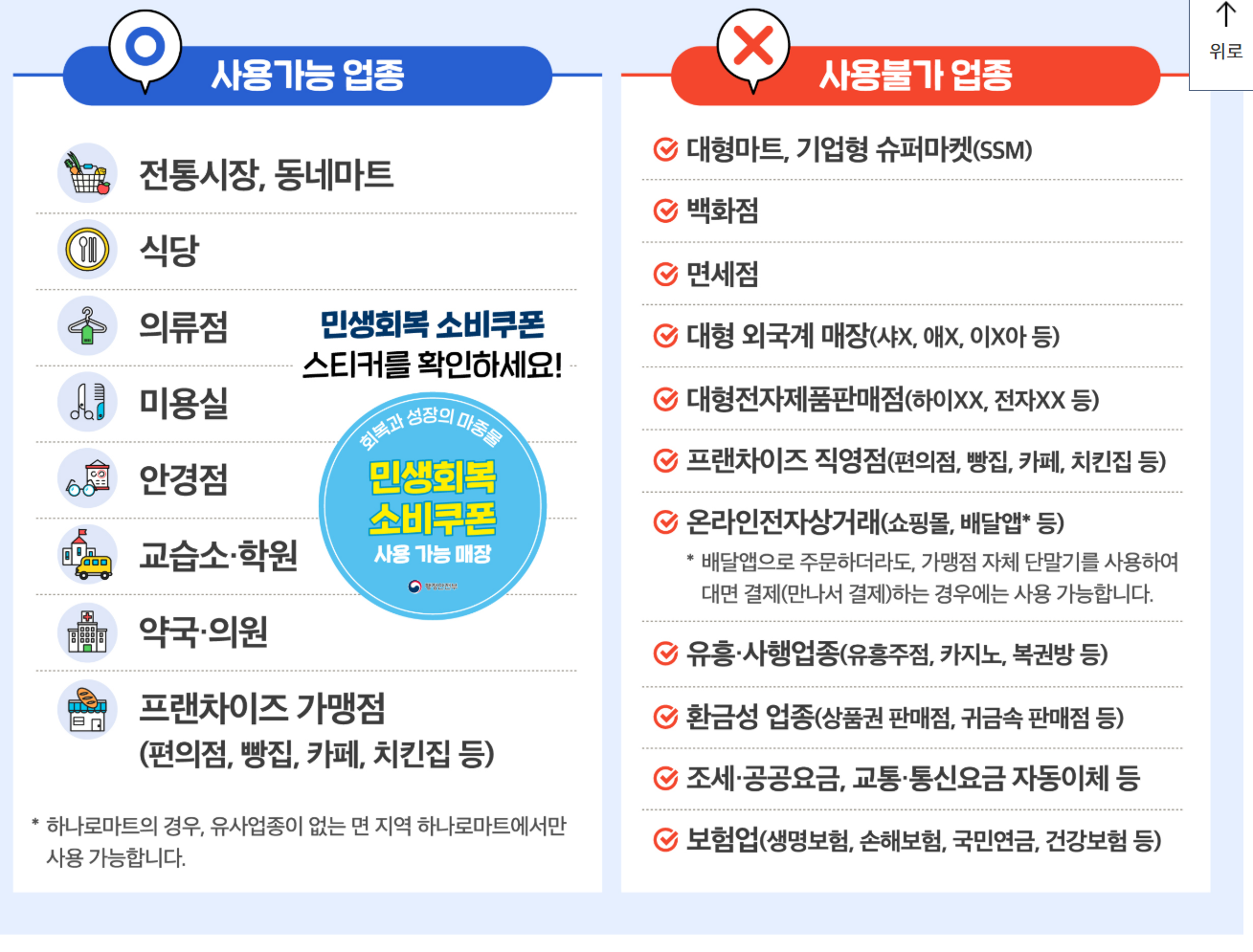- 매장 입구 '민생회복 소비쿠폰' 스티커가 있는지 확인 ✔️