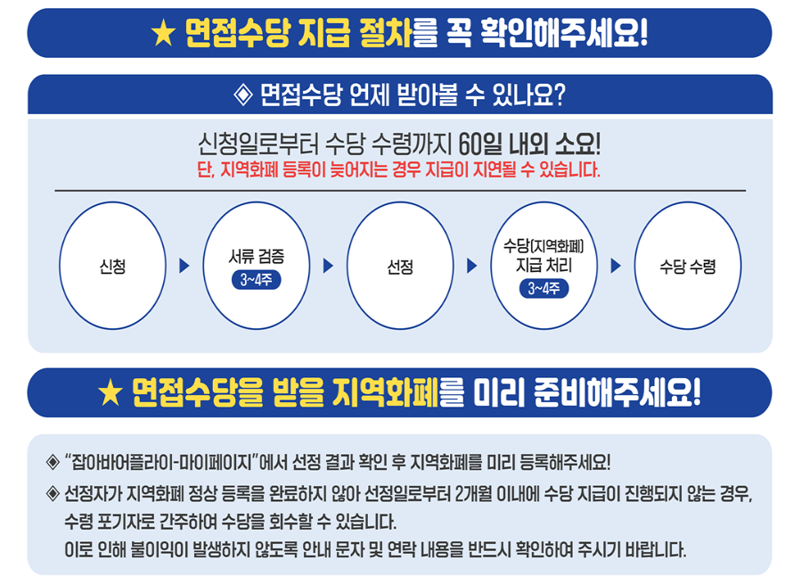 | 지원내용 | 면접 1회당 5만 원, 연 최대 10회(50만 원), 지역화폐 수령 |