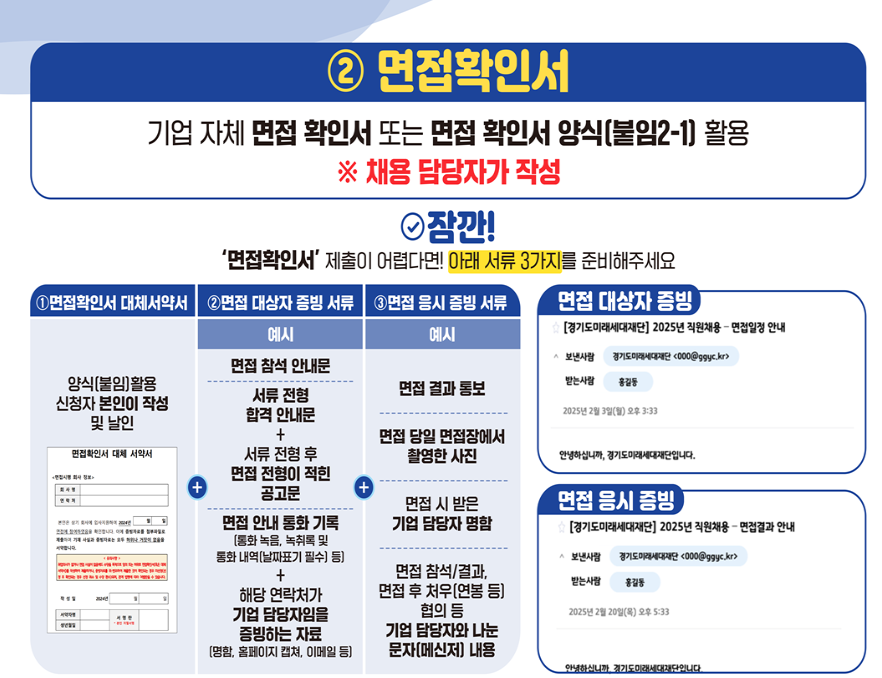 - 면접확인서: 면접 담당자 서명 또는 사진 포함된 증빙