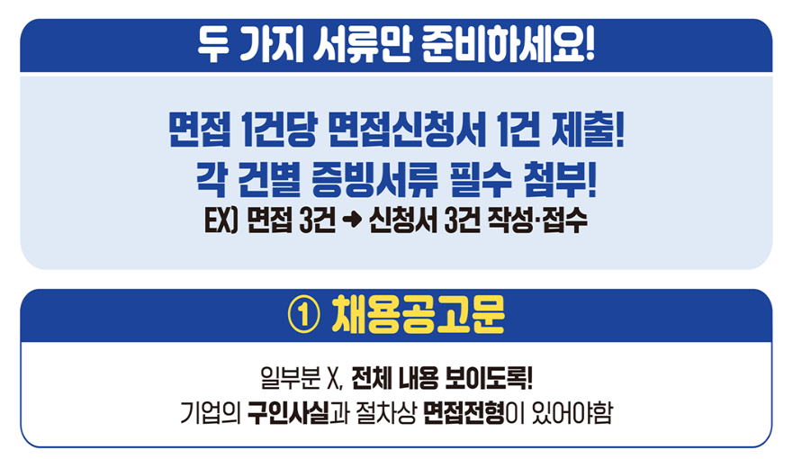 - 증빙서류 첨부 (채용공고·면접확인서 등)