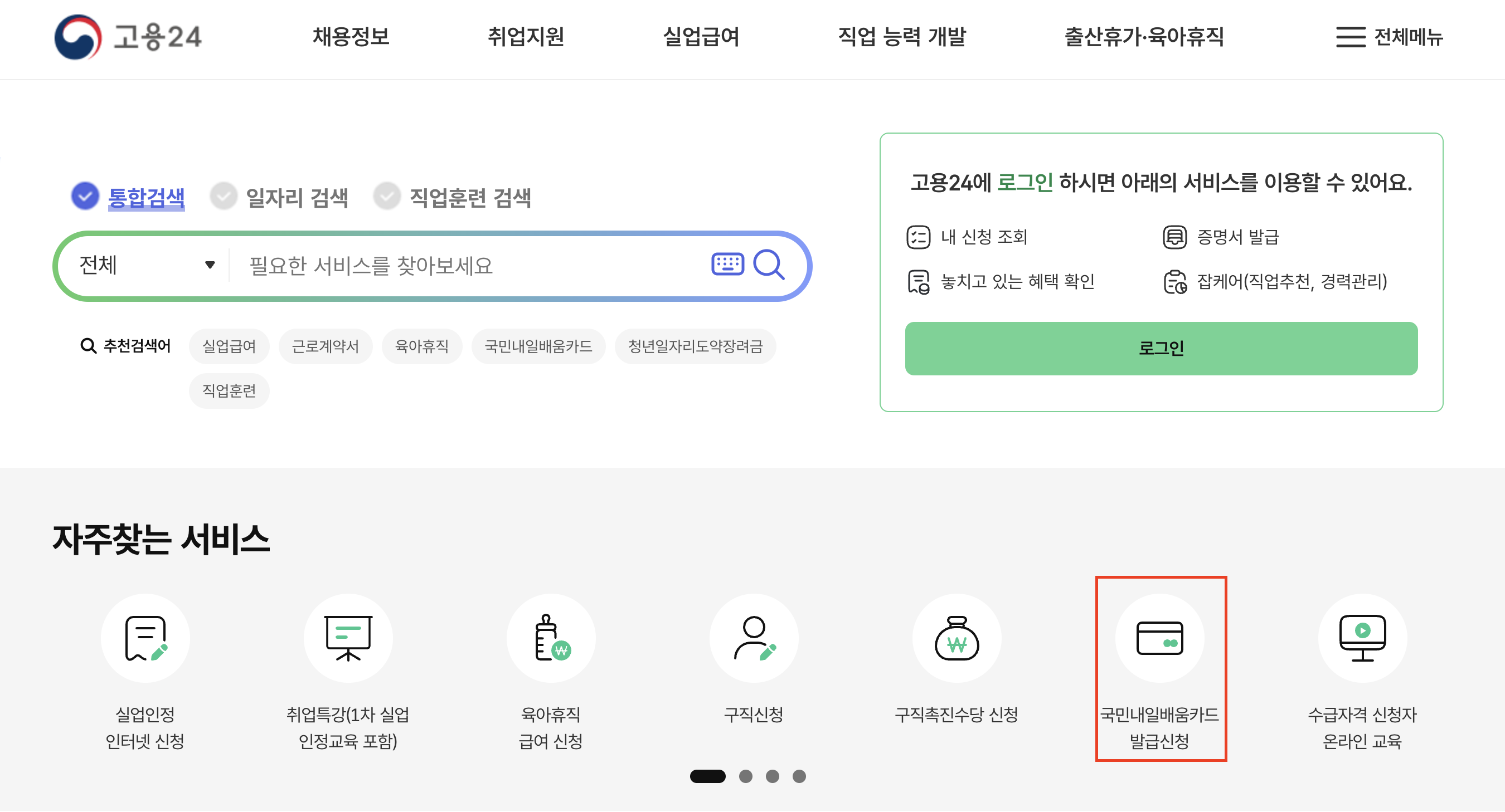 - 고용24에서 교육과정 검색: 카드 발급이 완료되면 고용24 홈페이지에서 원하는 교육과정을 검색합니다. 지역, 훈련 분야, 훈련기관명 등으로 상세 검색이 가능합니다.