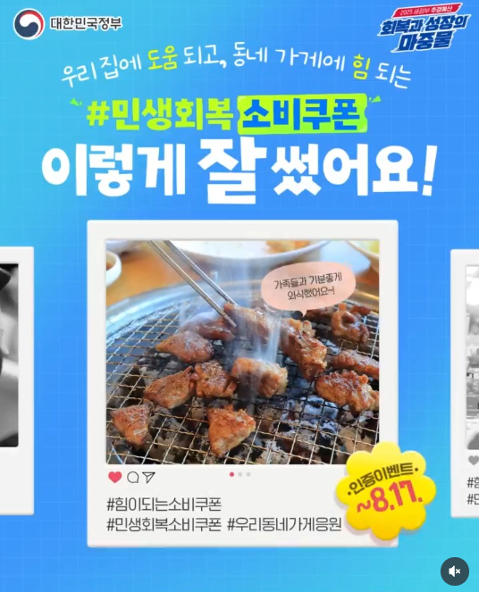 “우리 집엔 도움 되고, 동네 가게엔 힘이 되는 소비쿠폰”, 많은 분들이 후기로 인증 이벤트에도 활발히 참여하고 있습니다! 자세한 안내는 정부24 및 인스타그램 공지에서 확인하세요.