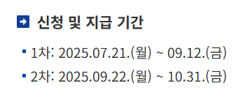 - 오프라인 신청: 주민센터 방문 또는 카드사 연계 오프라인 신청. 동일하게 9월 30일 마감.