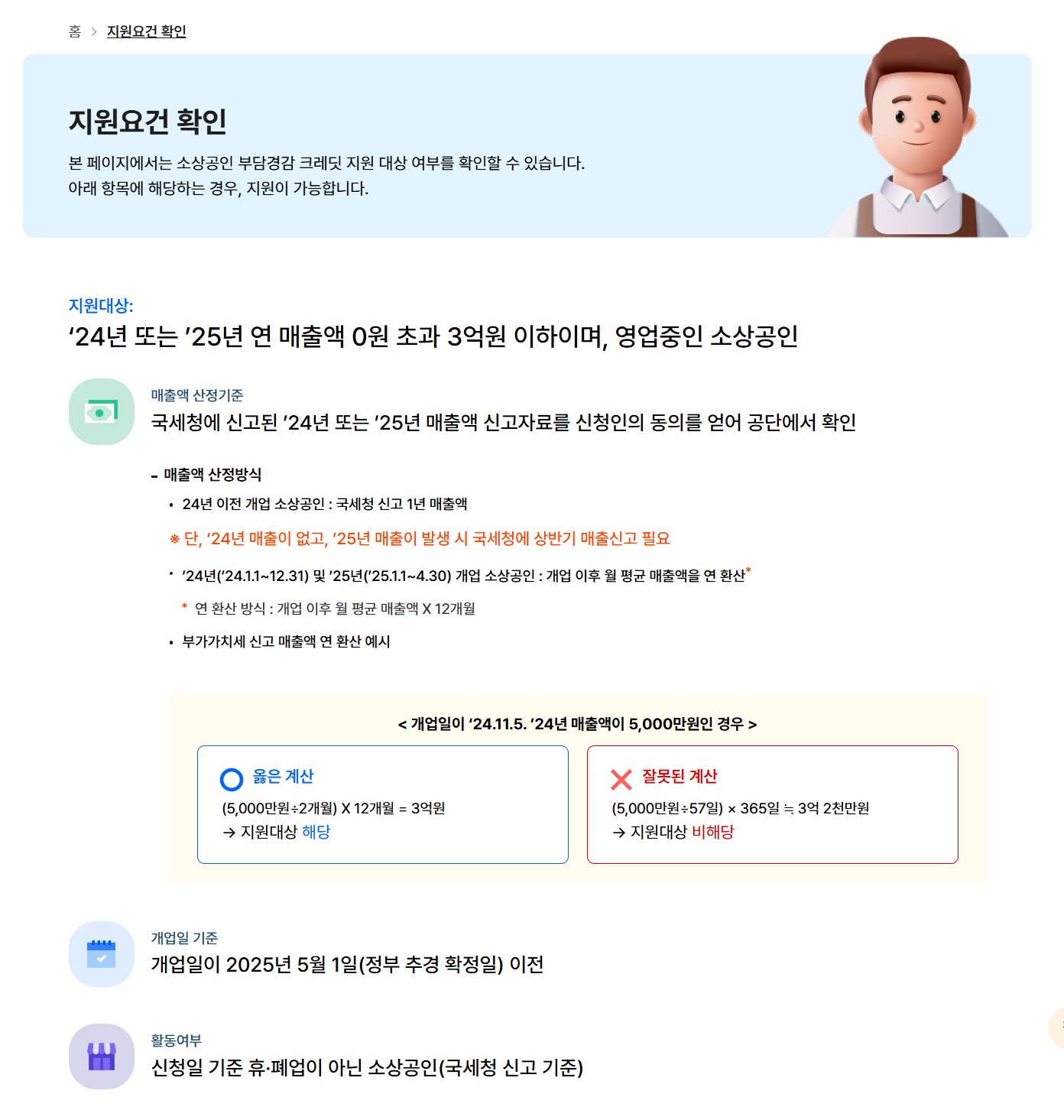 - 연 매출 3억 원 이하 소상공인