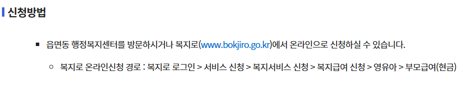 - ‘복지서비스 신청 → 복지급여 신청 → 영유아 → 부모급여(현금)’ 클릭