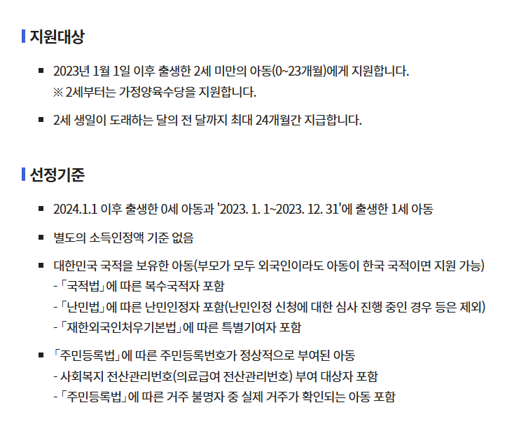- 만 0세(0~11개월): 월 100만 원 현금 지급