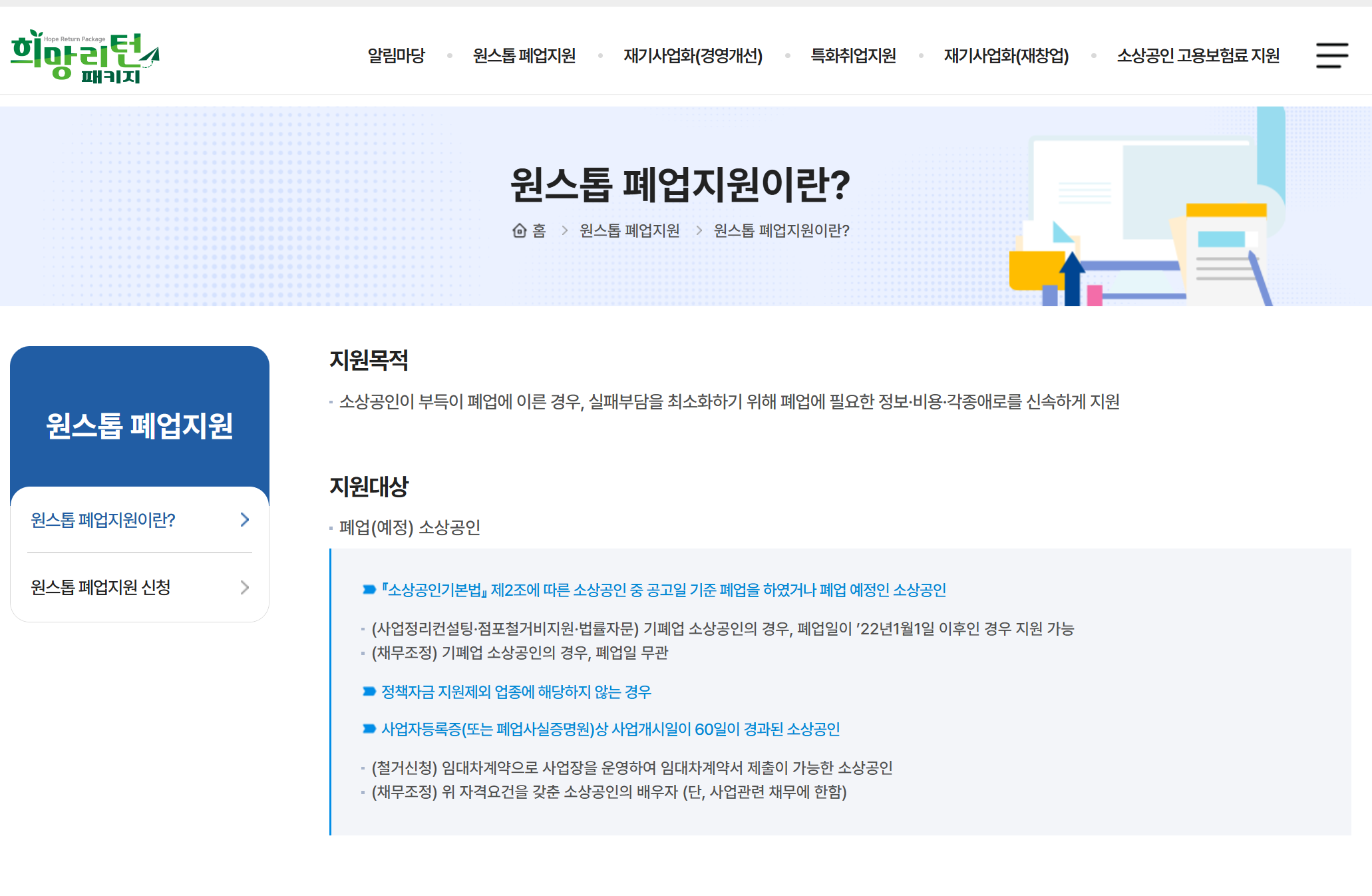 참고: 재창업이나 취업을 고려한다면, 희망리턴패키지 홈페이지에서 관련 프로그램을 함께 신청하세요.