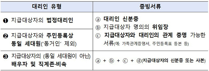 - 지급대상자 신분증(사본 가능)