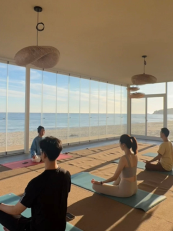 비치 요가로 아침을 열고,