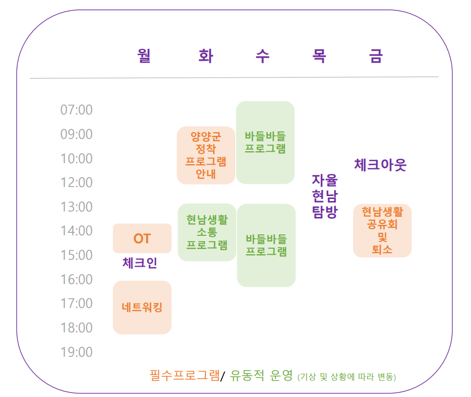 - 2일차: 정착 프로그램 안내 & 교류 시간