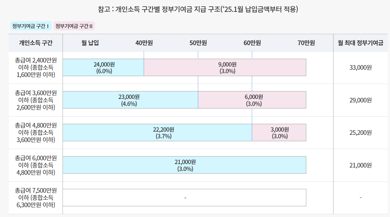 - 월 최대 70만 원 납입은 선택사항, 최소 납입도 가능 → 부담 줄이고 시작