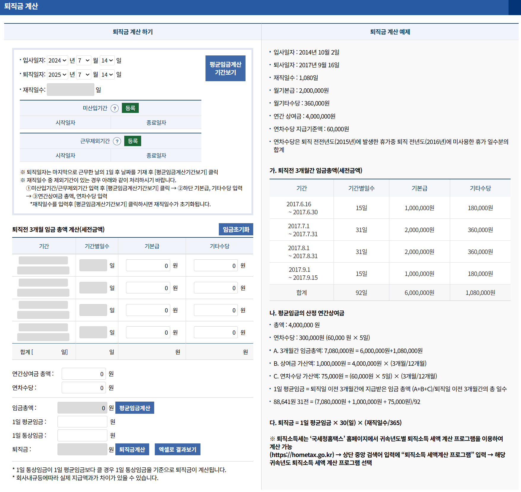 가장 많이 사용하는 퇴직금 계산기는 고용노동부 퇴직금 계산기입니다. 네이버에서도 간편하게 퇴직금 계산이 가능하지만, 세후 실수령액까지는 제공되지 않습니다.