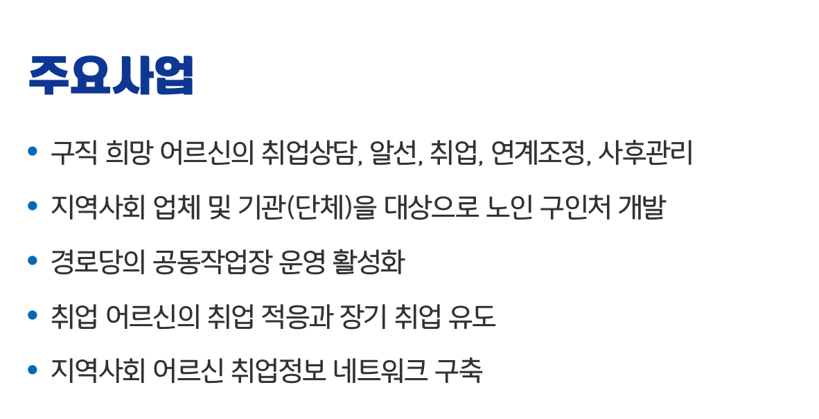 - 공익형 일자리: 환경 정비, 공공시설 안내 등