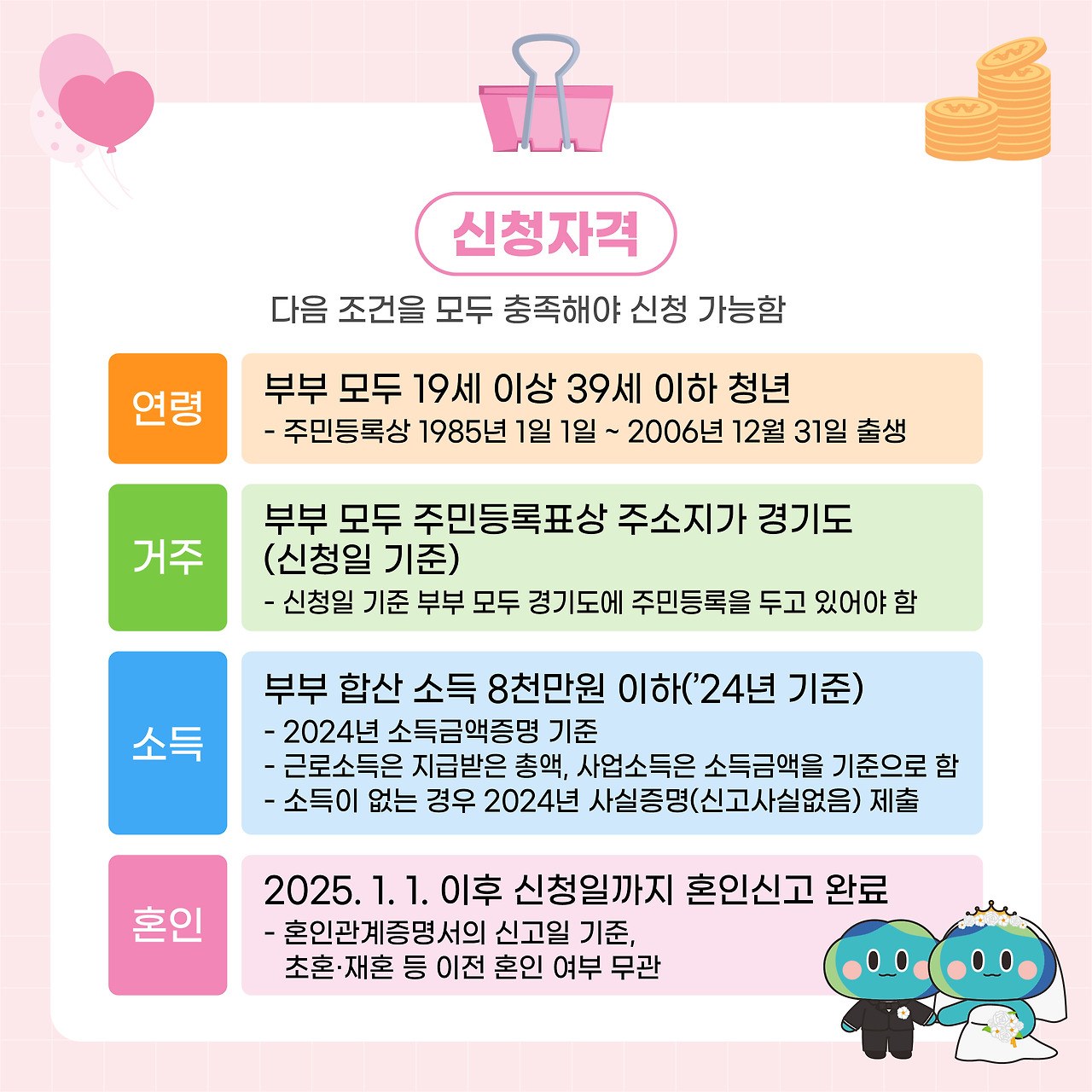 - 부부 모두 19세 이상 39세 이하 (1985.1.1~2006.12.31 출생)