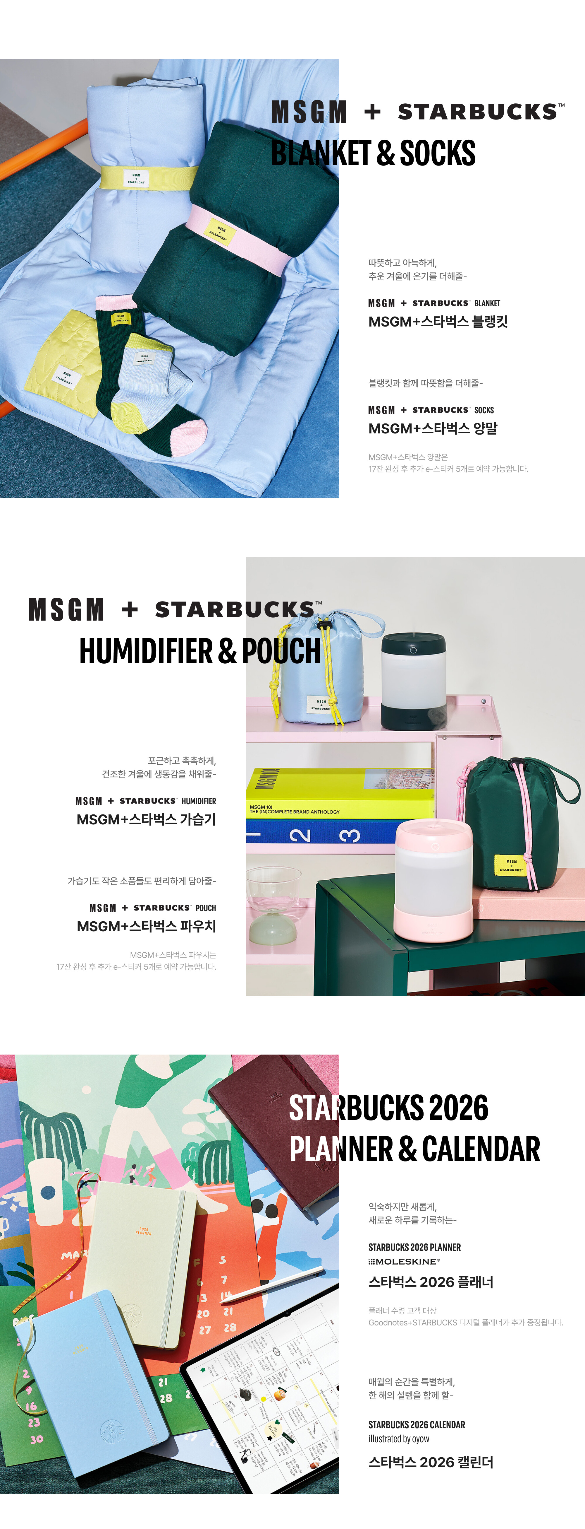 - MSGM + 스타벅스 블랭킷 2종 (그린·스카이 블루)
